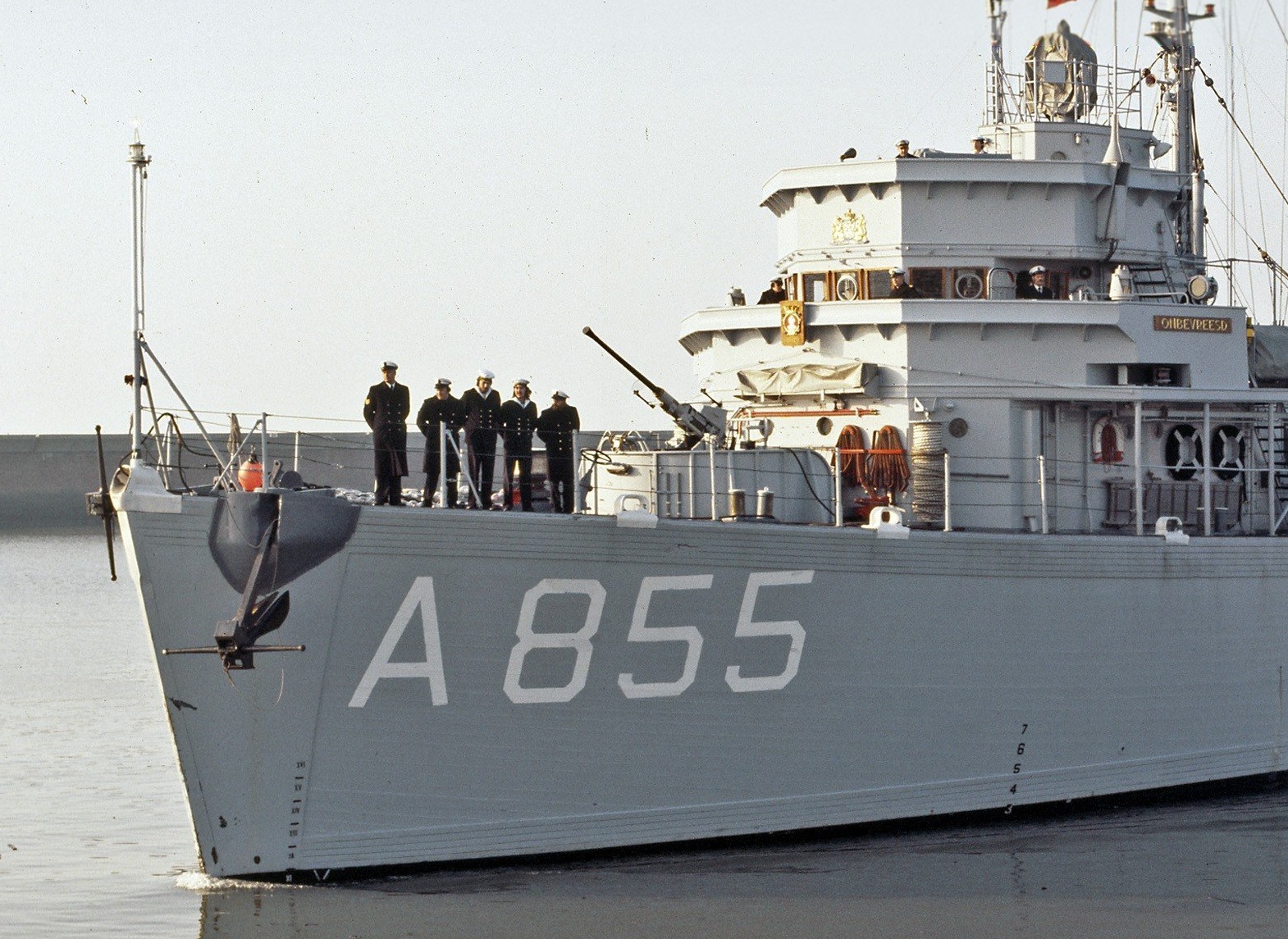 Museumschip ex Hr.Ms. Mercuur is samen met USS Lucid in de VS de enige overleefster van een klasse van 101 schepen. Hr.Ms. Onverschrokken – zoals Hr.Ms. Mercuur oorspronkelijk heette – maakte deel uit van de Onversaagd-klasse oceaanmijnenvegers. De schepen werden in de VS gebouwd en in het kader van het Mutual Defense Assistance Program uitgeleend aan Nederland. De Amerikaanse overheid liet naar aanleiding van de Korea Oorlog (1950-1953) uiteindelijk in totaal 101 ocean minesweepers van deze Aggressive klasse bouwen, verspreid over meerdere werven. De meeste kwamen in dienst bij de US Navy, de anderen gingen naar partnerlanden zoals België, Nederland, Frankrijk en Italië. De oceaanmijnenvegers waren destijds het neusje van de zalm. Ze hadden een flinke actieradius, waardoor ze goed inzetbaar waren. Ze konden zowel magnetische, akoestische als contactmijnen vegen en hadden dankzij hun bouw van hout en het consequente gebruik van non-magnetische metalen (messing, koper, roestvrij staal, aluminium) een uitstekend non-magnetisch profiel. Dit is enorm belangrijk om mijnen die op de zeebodem liggen en op het magnetisch veld reageren van een passerend schip veilig onschadelijk te kunnen maken. Ook beschikten ze over een moderne sonar en radar en een flinke commandocentrale met een moderne plottafel. Het ontwerp had ook nadelen. De installaties om zoetwater te produceren hadden duidelijk te weinig capaciteit. De ventilatie onderdeks en het comfort voor de bemanning hield niet over. Het waren echte “slingerbakken”, dus zeeziekte was een bekend fenomeen. USS Lucid (AM-458 / MSO-458) is de enige andere oceaanmijnenveger wereldwijd die aan de slopershamer is ontsnapt. De Lucid kwam in dienst in 1955 en werd 1970 buiten dienst gesteld om geconserveerd te worden in de mottenballenvloot. In 1976 werd het schip definitief afgevoerd van de sterkte. Het schip werd verkocht aan particulieren en diende tien jaar als woonboot, voordat ze in 1986 opnieuw werd verkocht en als magazijn werd gebruikt door een schroothandelaar. In 2005 werd de Lucid verworven door het Stockton Maritime Museum in Stockton, Californië. In 2011 werd het schip verhaald naar Stockton en sindsdien wordt het gerestaureerd om als museumschip een nieuwe toekomst te krijgen. Net als haar zusterschepen belandde de gloednieuwe Hr.Ms. Onverschrokken in conservatie in Den Helder, in de zogenaamde “mottenballenvloot”. Nederland had inmiddels genoeg andere mijnenvegers en de marine kon bezuinigen op de personeelskosten door mijnenvegers in te zetten die veel minder bemanningsleden nodig hadden. Bovendien waren er bij de marine geen voorraden van belang aan (kostbare!) reserve-onderdelen voor deze schepen. In oorlogstijd zouden de schepen ingezet worden op de Noordzee. Pas eind jaren ’60 besloot de marineleiding om de schepen om en om in dienst te nemen. De Onversaagd (ex AM480 – MSO 480, M 884, later A 854) werd gebouwd op de Amerikaanse scheepswerf Astoria Marine Construction Co. in Astoria (Oregon). In dienst gesteld op 27 mei 1954, daarna in conservatie gegaan. In april 1973 in dienst genomen als opnemingsvaartuig. In september 1976 uit dienst gesteld, in juli 1979 werd het verkocht voor de sloop. De Onbevreesd (ex AM 481, MSO 481, M 885, A 855) werd gebouwd op de Amerikaanse scheepswerf Astoria Marine Construction Co. in Astoria (Oregon). In dienst gesteld 21 september 1954, daarna in conservatie gegaan. In maart 1976 in dienst genomen als hoofdkwartier-ondersteuningsschip. In mei 1982 uit dienst gesteld en in maart 1989 verkocht voor de sloop. De Onvermoeid (ex AM484, MSO 484, M 887, A 857) werd net als ons schip gebouwd op de werf Peterson Builders Inc. in Sturgeon Bay in Wisconsin. In dienst gesteld 23 september 1954 en daarna in conservatie gegaan. In augustus 1965 ingedeeld als hoofdkwartier-ondersteuningsschip ten behoeve van de Mijnendienst. In oktober 1971 uit dienst gesteld en in februari 1975 verkocht voor de sloop. De Onvervaard (ex AM 482, MSO 482, M 888, A 858) werd gebouwd op de Amerikaanse scheepswerf Astoria Marine Construction Co. in Astoria (Oregon). In dienst gesteld 31 januari 1955. In augustus 1965 ingedeeld als hoofdkwartier-ondersteuningsschip ten behoeve van de Mijnendienst. In mei 1982 uit dienst gesteld en in november 1984 verkocht voor de sloop in Engeland. Op de foto wordt het naar Sheerness gesleept. © Foto L.W. Meylof, beeldbank NimH De Onverdroten (ex AM 485, MSO 485, M 889, A 859) werd gebouwd op de Amerikaanse scheepswerf Astoria Marine Construction Co. in Astoria (Oregon). In dienst gesteld 22 november 1954, daarna in conservatie gegaan. In augustus 1965 ingedeeld als hoofdkwartier-ondersteuningsschip ten behoeve van de Mijnendienst. In mei 1982 uit dienst gesteld en in september 1984 verkocht voor de sloop. Over de schepen van de Onversaagd-klasse was er tot 2024 geen boek geschreven. In dat jaar verscheen ons eigen boek “Onverschrokken overleefster – van oceaanmijnenveger Hr.Ms. Onverschrokken tot museumschip Mercuur” (meer info en bestellen), maar ook een boek van de hand van Bob Roetering, officier en voormalig commandant mijnendienst buiten dienst. Zijn boek AMS-en & Oceans gaat voor 2/3 over de AMS-en en voor 1/3 (circa 60 pagina’s) in op de oceaanmijnenvegers. Roetering beschrijft per schip de levensloop en gaat ook in op de aanleiding voor de bouw, constructie en techniek. Het is in elke boekhandel te bestellen of direct bij uitgeverij Walburg Pers. Fotocollage: met dank aan de heer Jean Claude Poot Anders dan de Koninklijke Marine in Nederland heeft de Belgische Zeemacht (benaming tot 2000, daarna heette het tot 2025 “marinecomponent” en nu Belgische marine) volop gebruik gemaakt van hun ocean minesweepers. Veel Belgische oud-opvarenden zijn dan ook actief op hun Facebook-pagina Fan des 7. M.S.O en ook in Vlissingen begroeten we regelmatig oud-opvarenden die de sfeer van een voormalige MSO willen proeven. In 1956 kwamen vier schepen in dienst: In 1960 kwam de laatst g